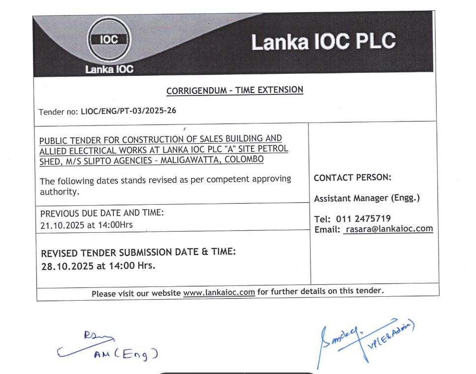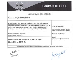 October 15, 2025CONSTRUCTION OF SALES BUILDING AND ALLIED ELECTRICAL WORKS AT LANKA IOC PLC "A" SITE PETROL SHED M/S SLIPTO AGENCIES MALIGAWATTA, COLOMBO.